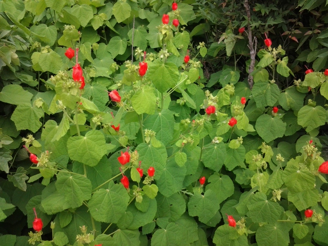 We were rewarded with blooms: bright paper lanterns of Chinese red accompanied by insignificant green flowers. I still don’t know what it is but it’s pretty and worth the wait.