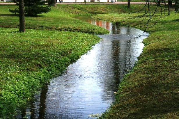 A stream cuts through a field, one drop at a time.